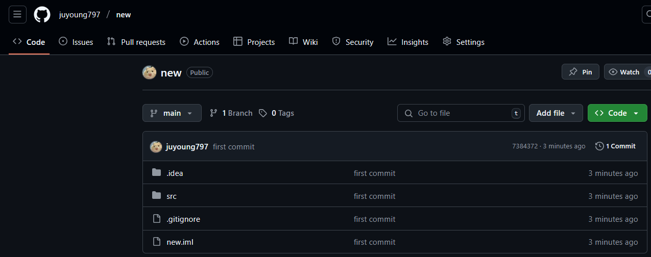 ์ด๋ฏธ github์ ์ฐ๋์ด ๋์ด ์๋ค๋ฉด ์ธํ ๋ฆฌ์ ์ด์์ ๋ฐ๋ก ์๊ฒฉ ๋ ํฌ์งํ ๋ฆฌ๋ฅผ ์์ฑํ๊ณ pushํ ์ ์๋ค.
