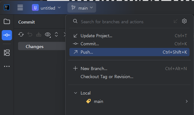 ์๊น commit ๋ฒํผ ์๋์ push ๋ฒํผ์ด ์๋ค.