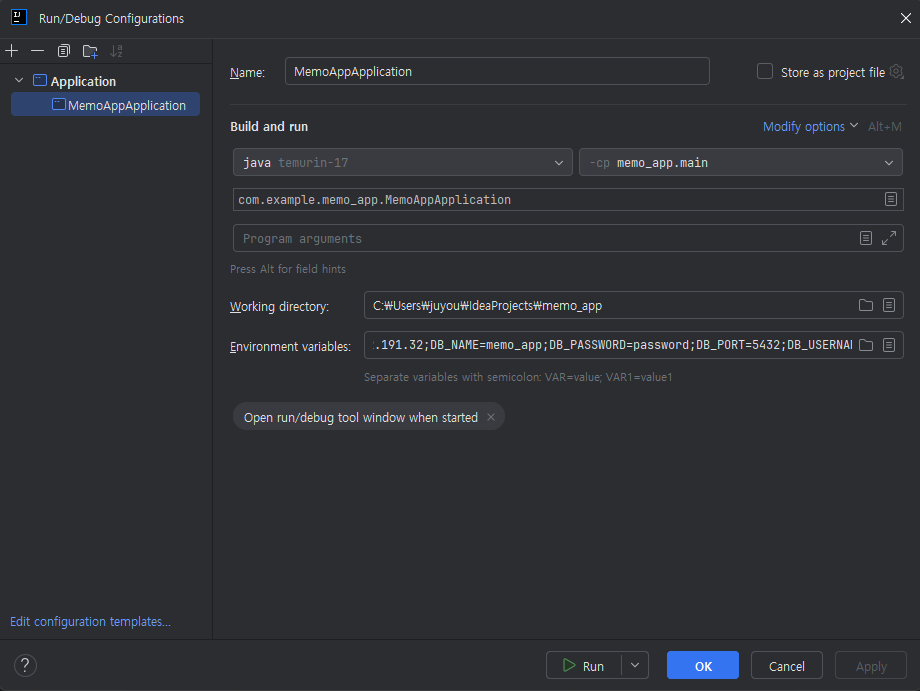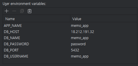 โ๏ธ application.yml ํ์ผ์ ๋ง๊ฒ ํ๊ฒฝ ๋ณ์๋ฅผ ์ถ๊ฐํด ์ค๋ค.