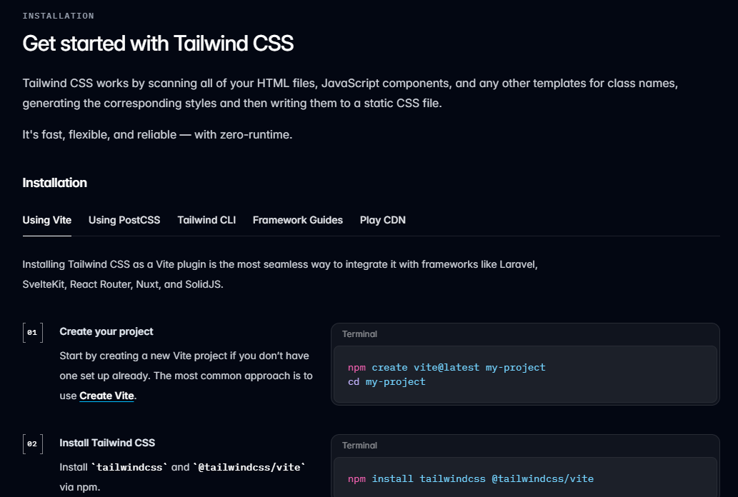 npm install tailwindcss @tailwindcss/vite