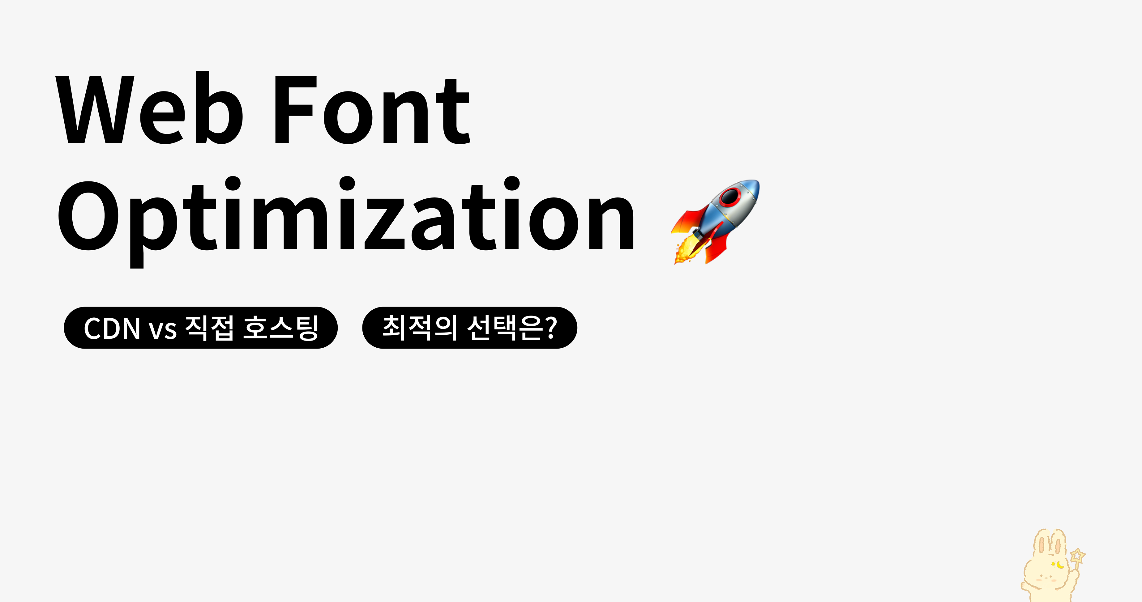 웹 개발하면서 폰트는 항상 CDN 방식으로 가져와서 사용했더니 다른 방식에 대해서는 거의 잊고 있었다가 최근에 듣던 강의에서 폰트 파일을 직접 public 폴더에 넣고 불러오는 방식을 사용하는 것을 보고 '아! 이 방법도 있었지!' 생각이 들면서 그럼 어떤 방식이 더 좋은 걸까? CDN에서 가져오는 게 좋을까, 아니면 직접 파일로 가져오는 게 좋을까? 의문점이 생겼다. 이 의문을 해결하기 위해 찾아보다가 결국 웹폰트 최적화에 대해 공부해야겠다는 생각이 들었다. 이번 기회에 웹폰트 최적화에 대해 제대로 정리해 보려 한다. 👩🏻💻💭