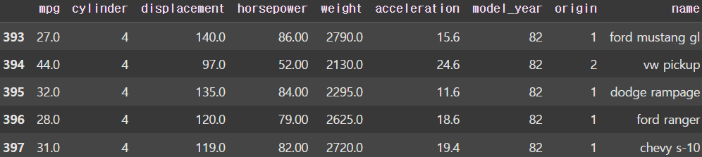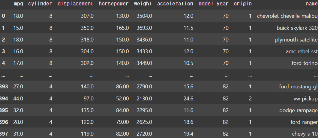 df = pd.read_csv('/파일경로/auto-mpg.csv', header=None)