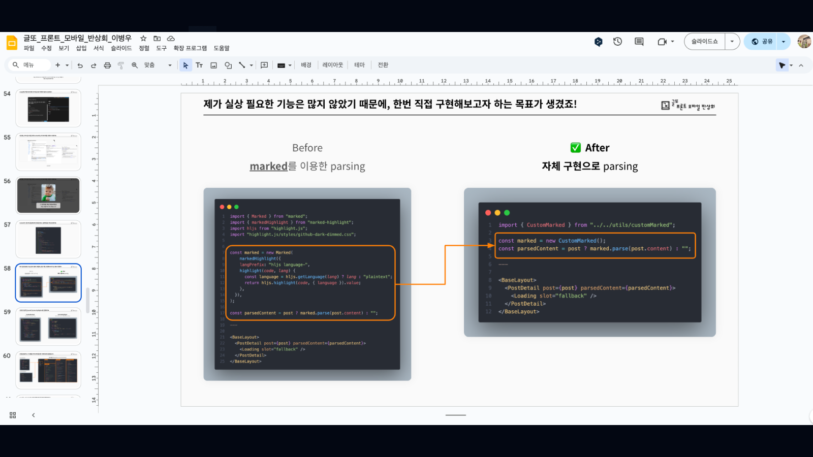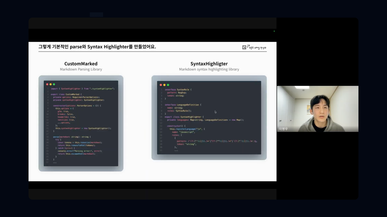 이번에는 나름 기술 주제의 발표 자료를 만들며 느낀 것은, 시간이 2배 이상 더 걸린다는 것이었어요. 왜냐하면... 코드와 발표 자료를 비동기적으로 만들어나가야했기 때문입니다.