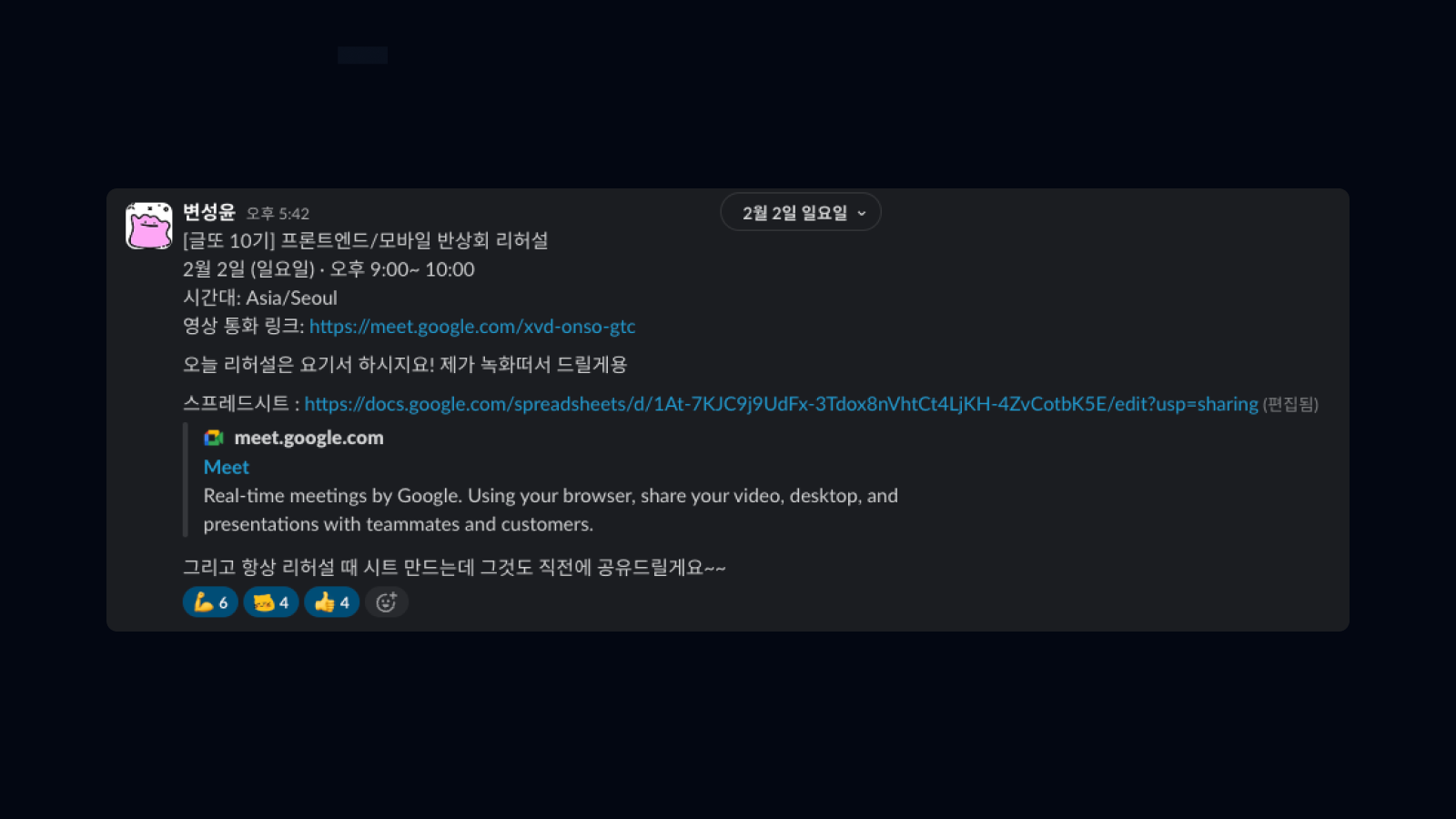 글또 반상회만의 특별한 점이었습니다. 그냥 이야기를 전달드리고 끝이 아니라 어떻게 받아들였는지 즉시 알 수 있었으니까요!!