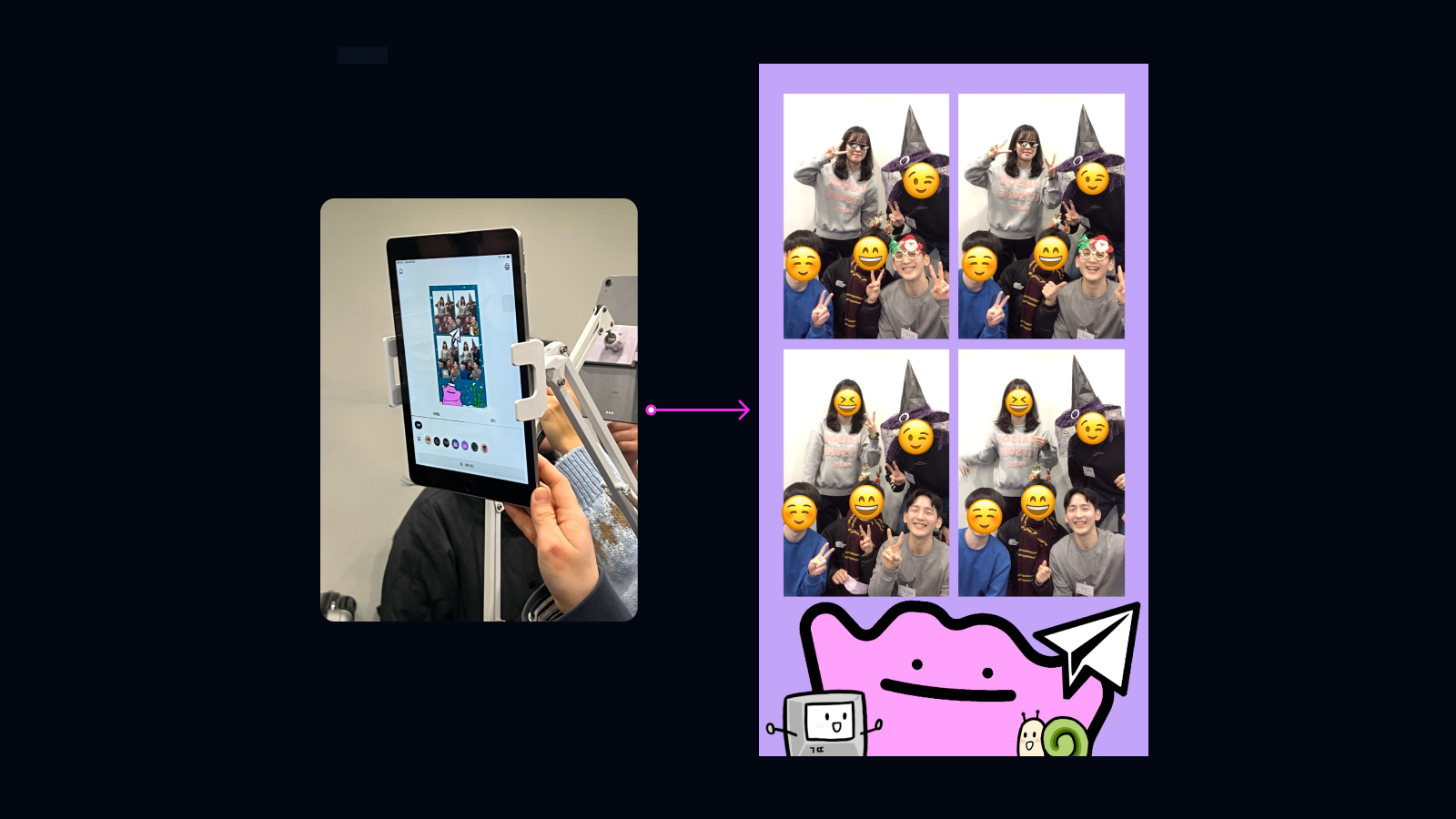 대화를 나누며 시간이 정신없이 흐르는 와중, 조별로 인생네컷을 찍는 시간이 되었어요. 덕분에 오늘의 인연을 기념으로 간직할 수 있었습니다!(성윤님의 트레이드마크, 메타몽으로 선택했죠!)