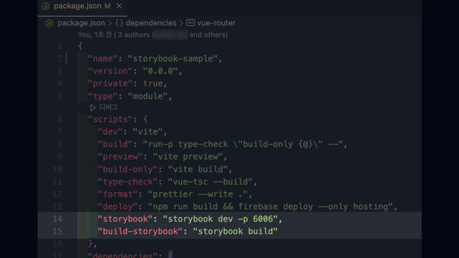 Storybook 설치와 초기화를 동시에 진행하면, package.json에 다음의 script가 자동 생성됩니다.