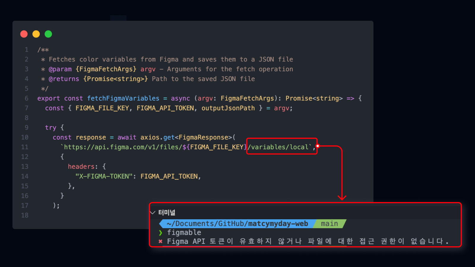 처음에는 특정 프로젝트 내에서 피그마 API를 활용해 컬러 코드를 가져오는 간단한 모듈을 만들었습니다. 이 단계에서는 기본적인 HTTP 요청