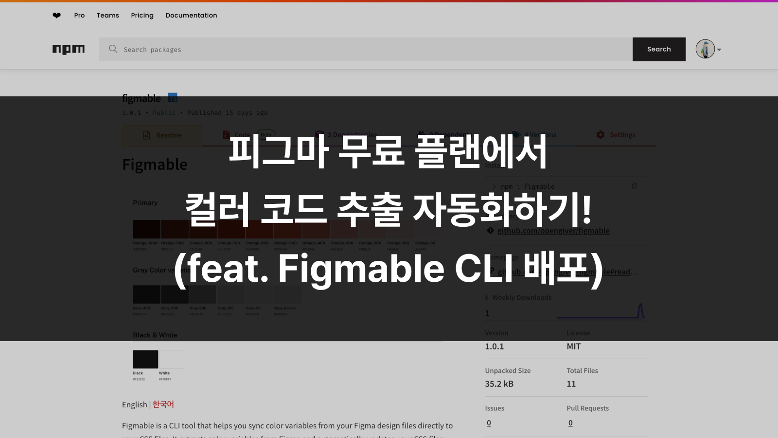 피그마 무료 플랜에서도 쉽게 피그마의 컬러 코드를 프로젝트의 root CSS에 import할 수 있는 figmable CLI를 만들었습니다! 🎉