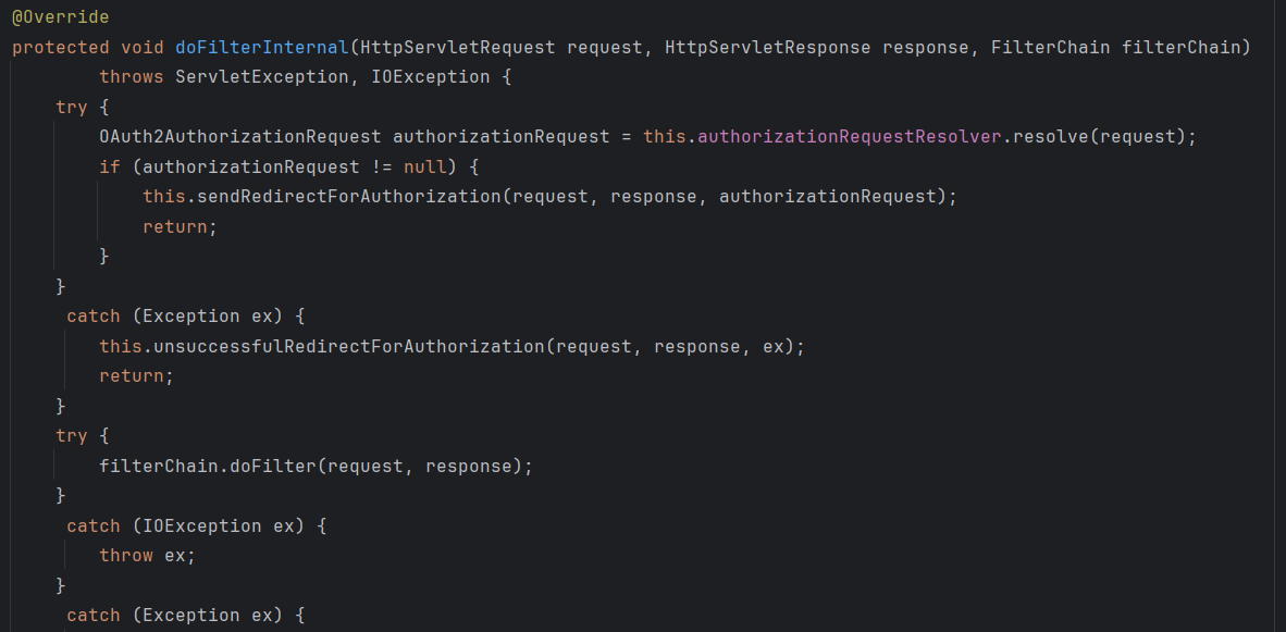 요약하면, OAuth2AuthorizationRequestRedirectFilter 필터는 다음과 같은 작업을 처리한다.