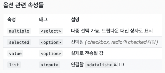 multiple // nultiple은 한번에 여러개를 선택할수 있게하는 속성
