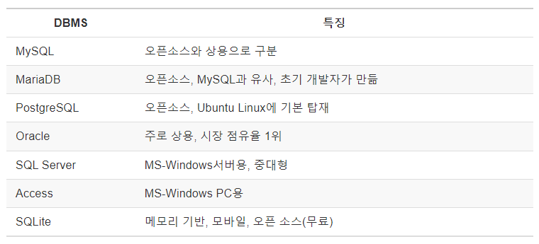 ※ DB의 구성 요소 중 테이블이 가장 중요합니다.