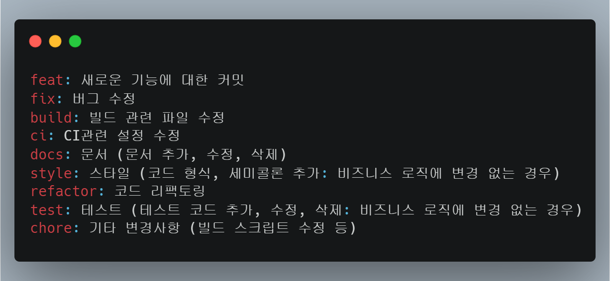 해당 커밋은 무엇에 대한 작업인지 키워드를 통해 표시합니다.