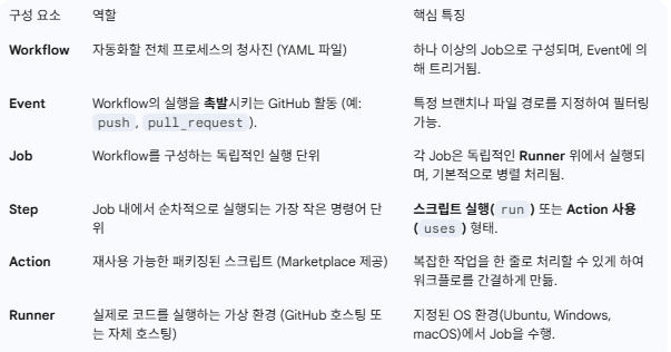 GitHub Actions는 이벤트 기반 자동화 엔진으로, GitHub 리포지토리에서 발생하는 특정 이벤트(예: 코드 푸시, 풀 리퀘스트 생성 등)를 감지하여 일련의 자동화된 작업(Workflow)을 실행.