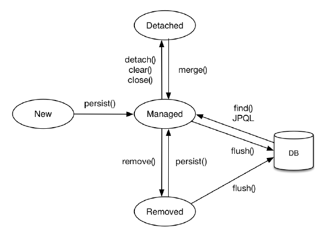 JPA에서 엔티티는 다음과 같은 4가지 상태를 가집니다.