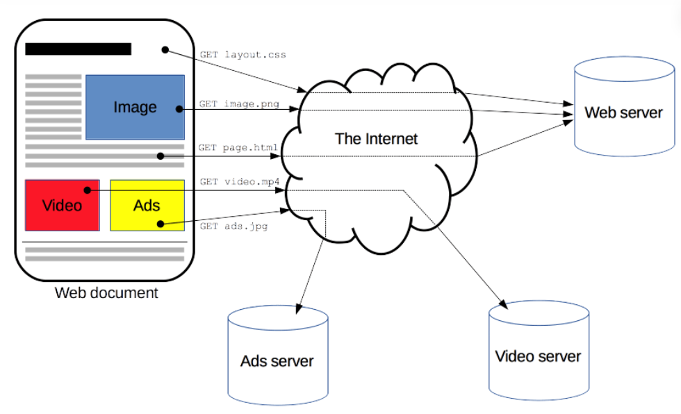 웹 브라우저로 사이트를 요청하면 HTML 뿐만 아니라 자바스크립트, css, 추가 이미지 등등