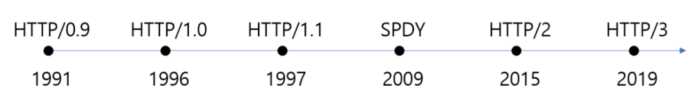 ① HTTP/0.9 (1991년) : GET 메서드만 지원, HTTP 헤더 X