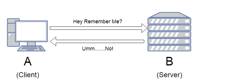 왜냐하면 서버는 클라이언트의 상태를 보존하지 않기 때문에 그 클라이언트가 회원인지 모르기 때문.