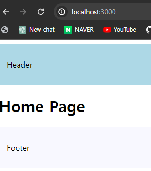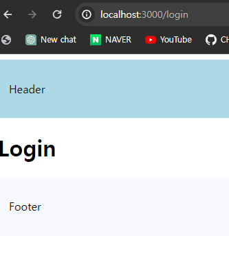 이렇게 root layout에 header 태그와 footer 태그를 추가해주면