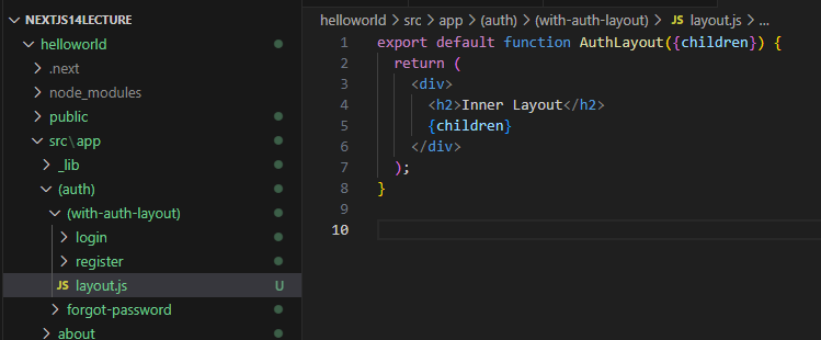 만약 라우트 그룹을 만들고 해당 라우트 그룹에서 추가적인 레이아웃 컨텐츠를 만들고 싶으면