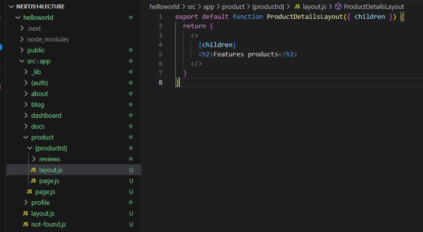 컨텐츠를 추가하고 싶은 페이지의 경로(여기선 [productId] 폴더)에 layout.js를 만들어주면