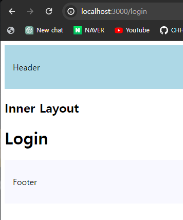 이와 같이 경로를 지정해주면 /login, /register 경로에서만 AuthLayout이 출력되게 된다.