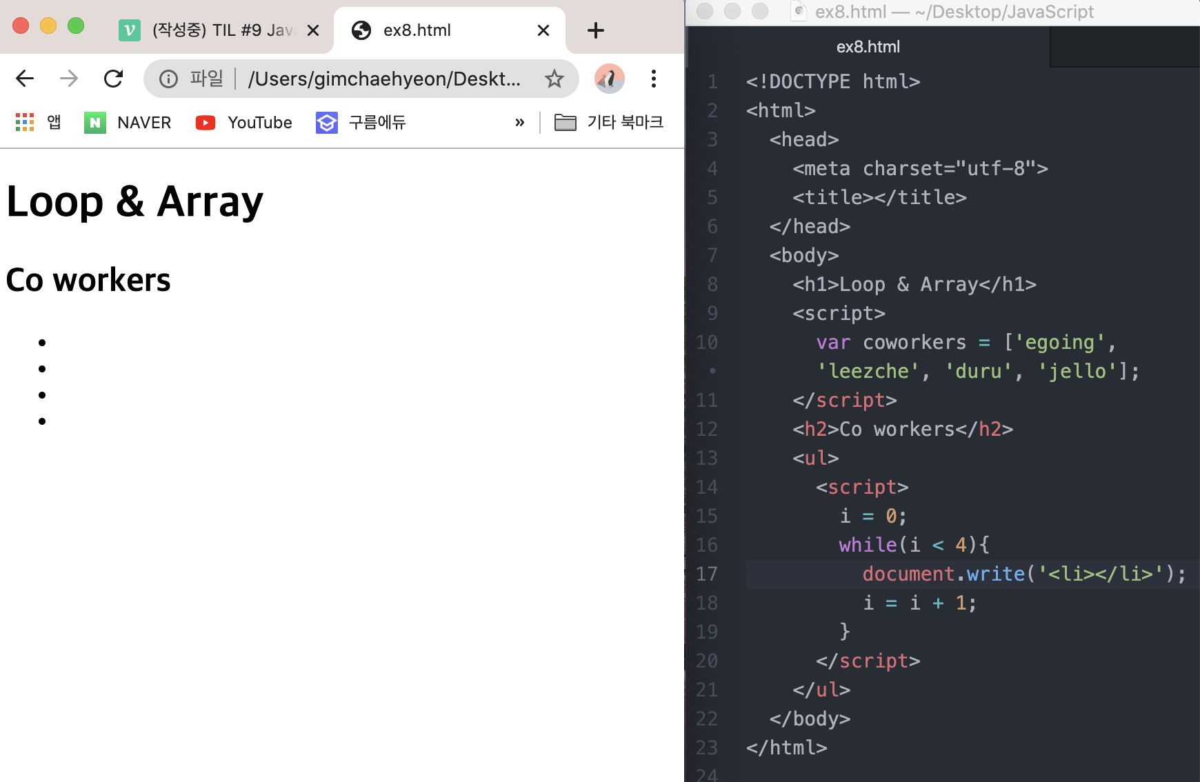 -> i의 값이 corworkers 배열의 길이 만큼! (count가 0부터 시작하므로 총 배열 갯수-1 만큼) 반복되게 하기