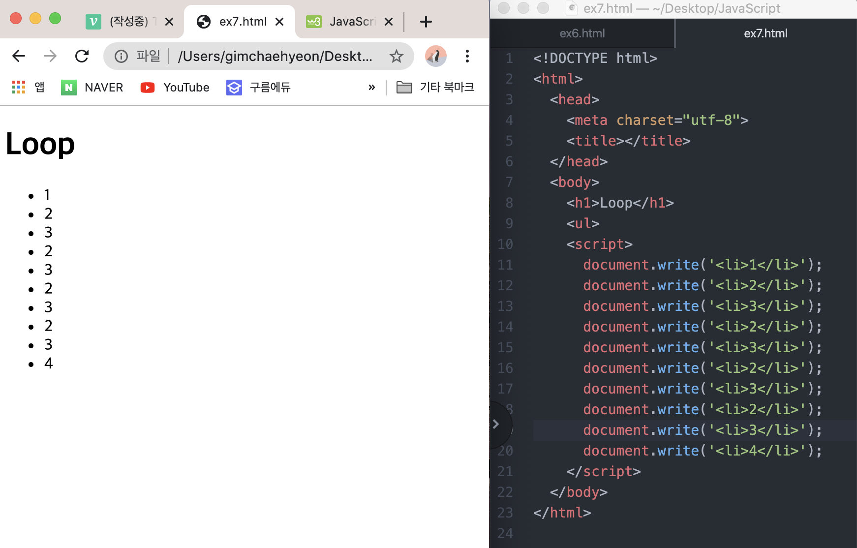 배열에 담겨있는 data들을 순차적으로 꺼내서 li라는 tag로 만들어 주는 것 = 반복(Loop)