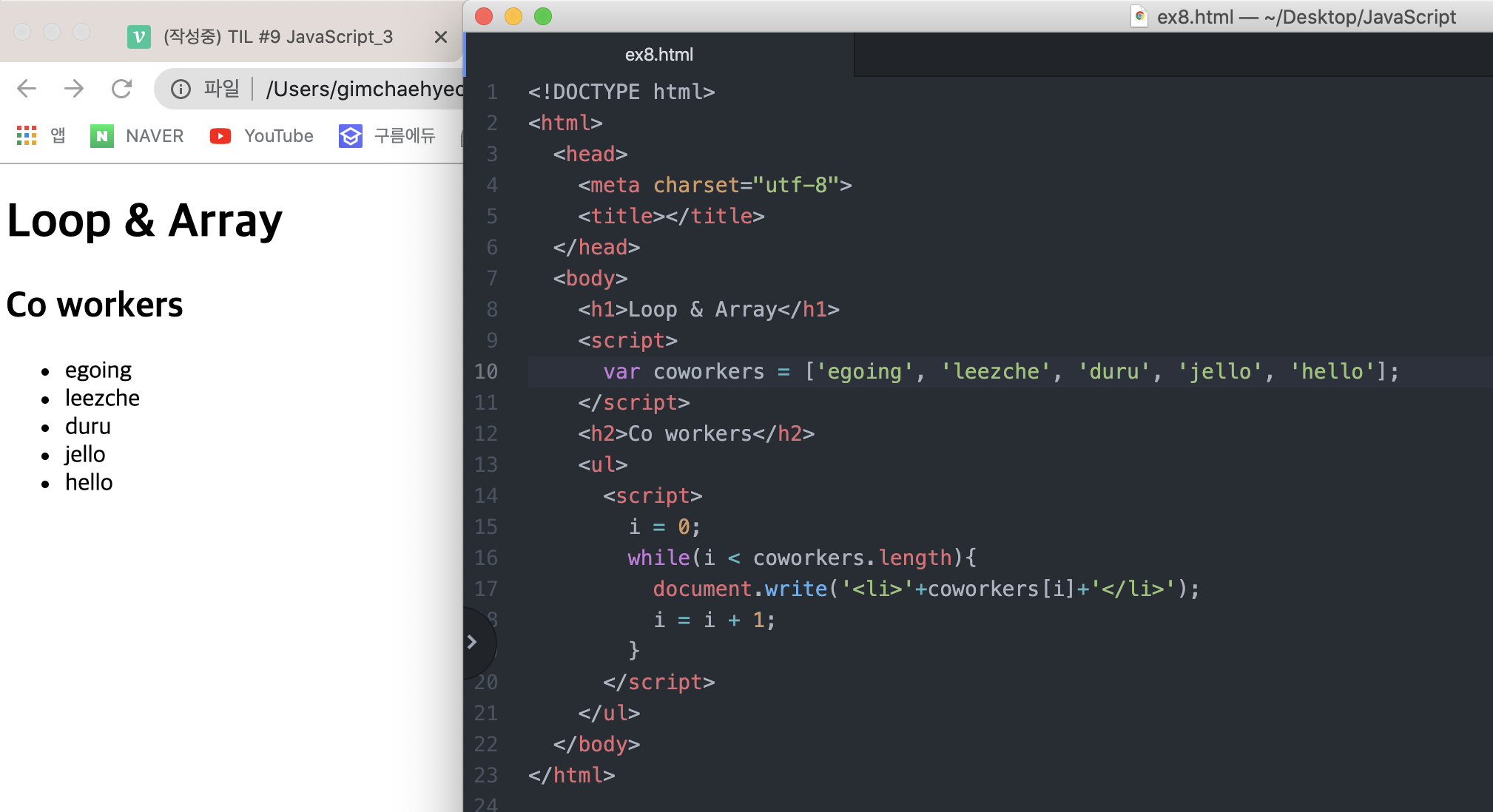 대괄호 사이의 i는 변수 i임과 동시에 corworkers 배열의 index값임을 의미한다.!!!!