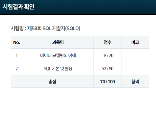 시험을 끝내고 후기를 확인해보니 여러 곳에서 어려웠다는 반응이 나왔다. 여태까지의 SQLD 시험 중 가장 어려웠다는 평가가 많았고 다음 회차도 비슷하게 출제된다면 SQLD는 일반적인 인식과 달리 결코 쉽지 않은 시험이 될 것으로 보인다.