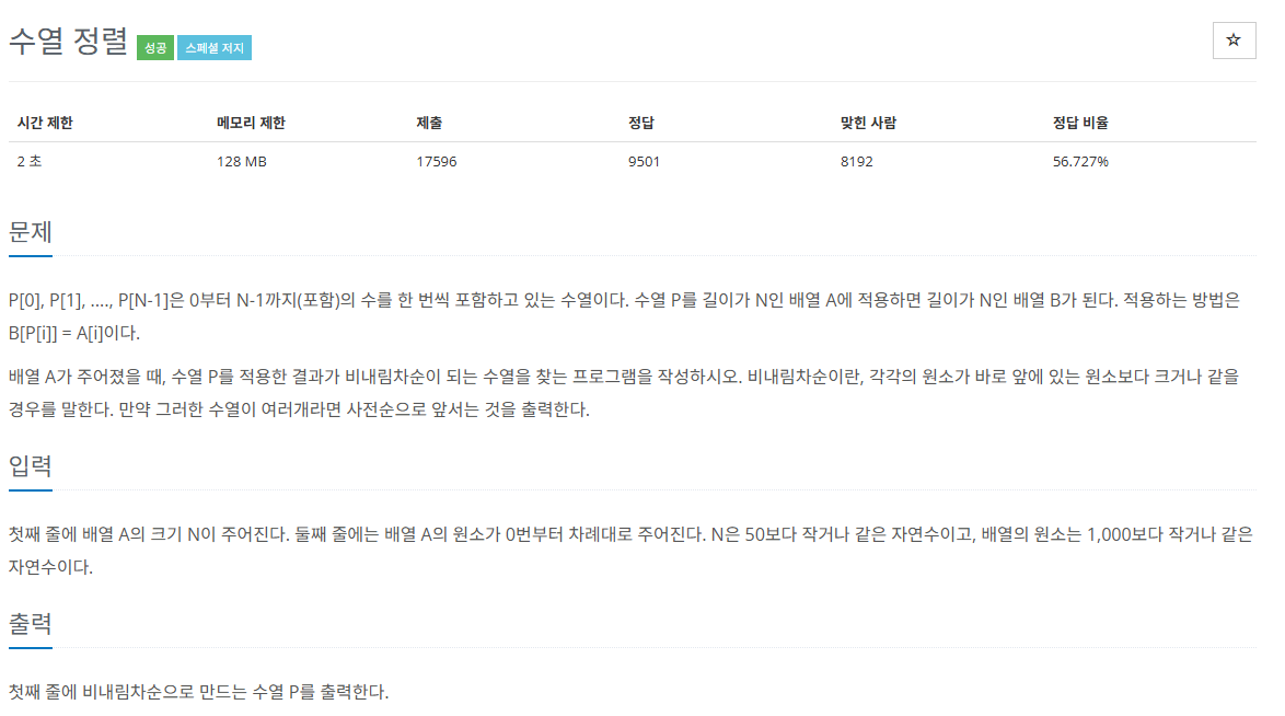 정수 배열 arr과 해당 인덱스를 저장할 index 배열을 생성한 후 index 배열을 arr의 값에 따라 정렬하였다. 이후 정렬된 index를 이용해 sequence 배열을 구성하고 출력하였다.