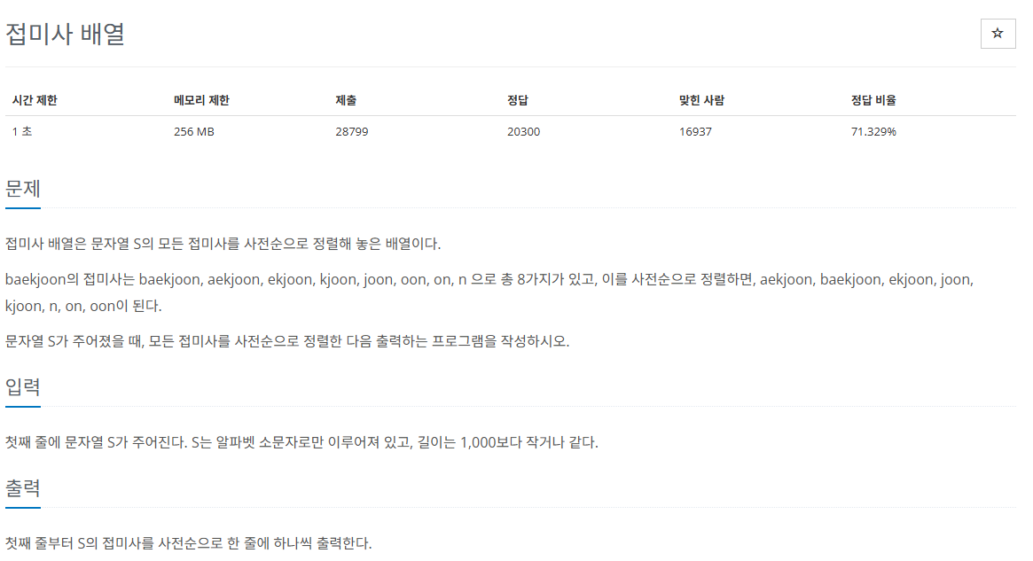 substring를 사용해 문자열을 자르고 ArrayList에 집어넣고 정렬하였다. Set을 사용하면 시간복잡도롤 줄일 수 있다.
