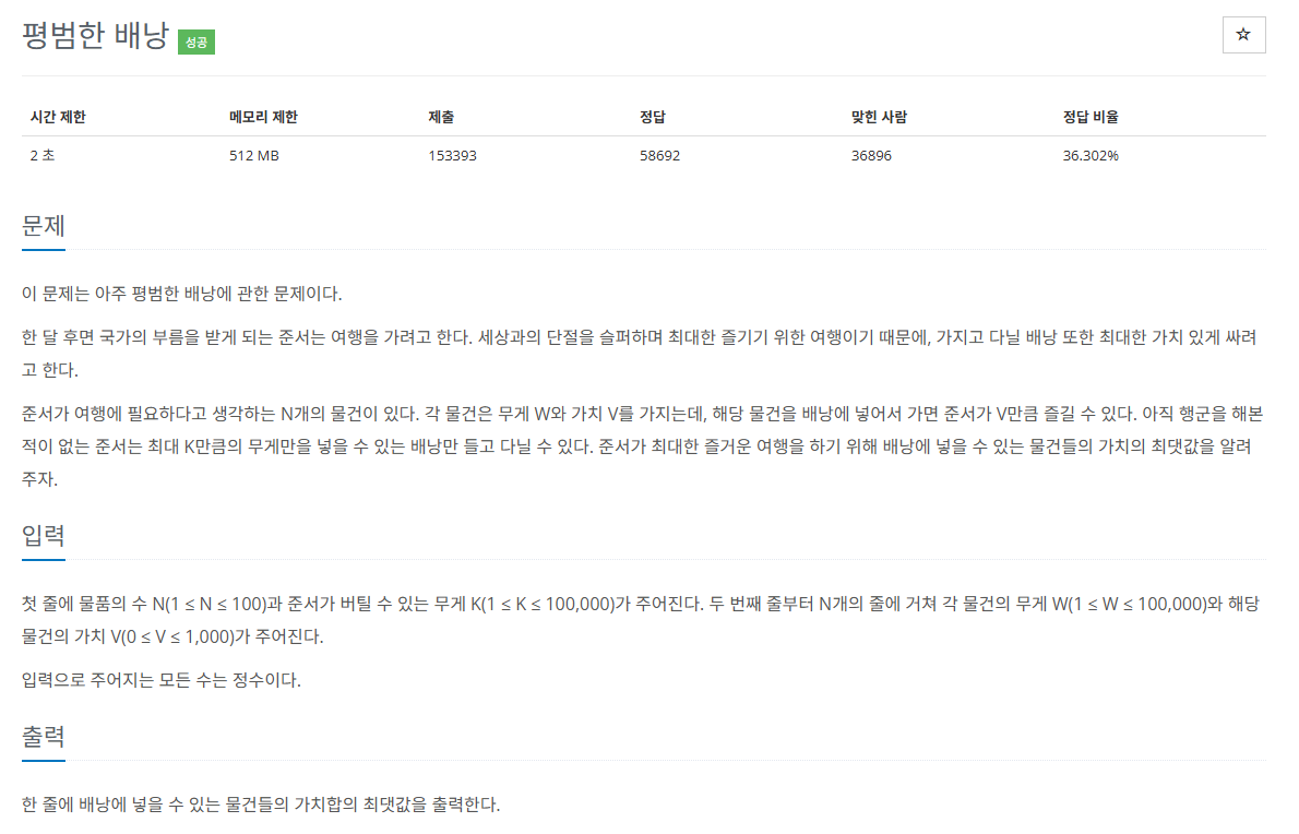 dp[j] = Math.max(dp[j], dp[j - w] + v);