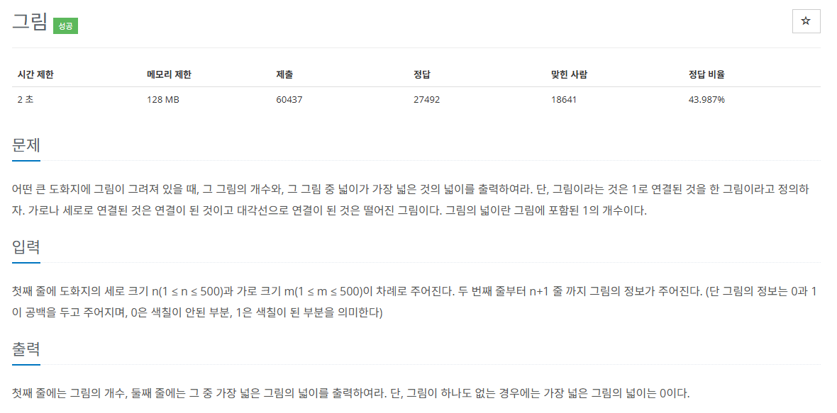 map[i][j]==1 && !check[i][j]일때 dfs해서 count를 센다. 그리고 dfs마다 sum++을 해주어 가장 큰 max 값을 구해주었다.