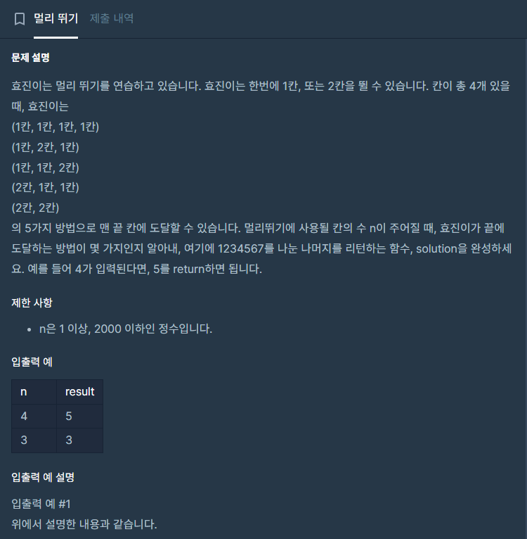 dp[num] = (dfs(num + 1, n) + dfs(num + 2, n)) % 1234567;