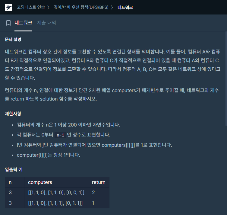 그래서 첫 행이 [1,1,0]이면 자기자신과 1번이 연결되어있고 2번은 연결되어있지 않다는 것이다.