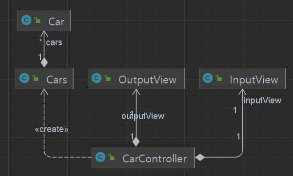 1. Controller 는 Facade 로 의도하고 사용했는데, Car, Cars, InputView, OutputView 와 적든 많든 의존관계에 놓여있다. 이게 맞는 구현인지 궁금함
