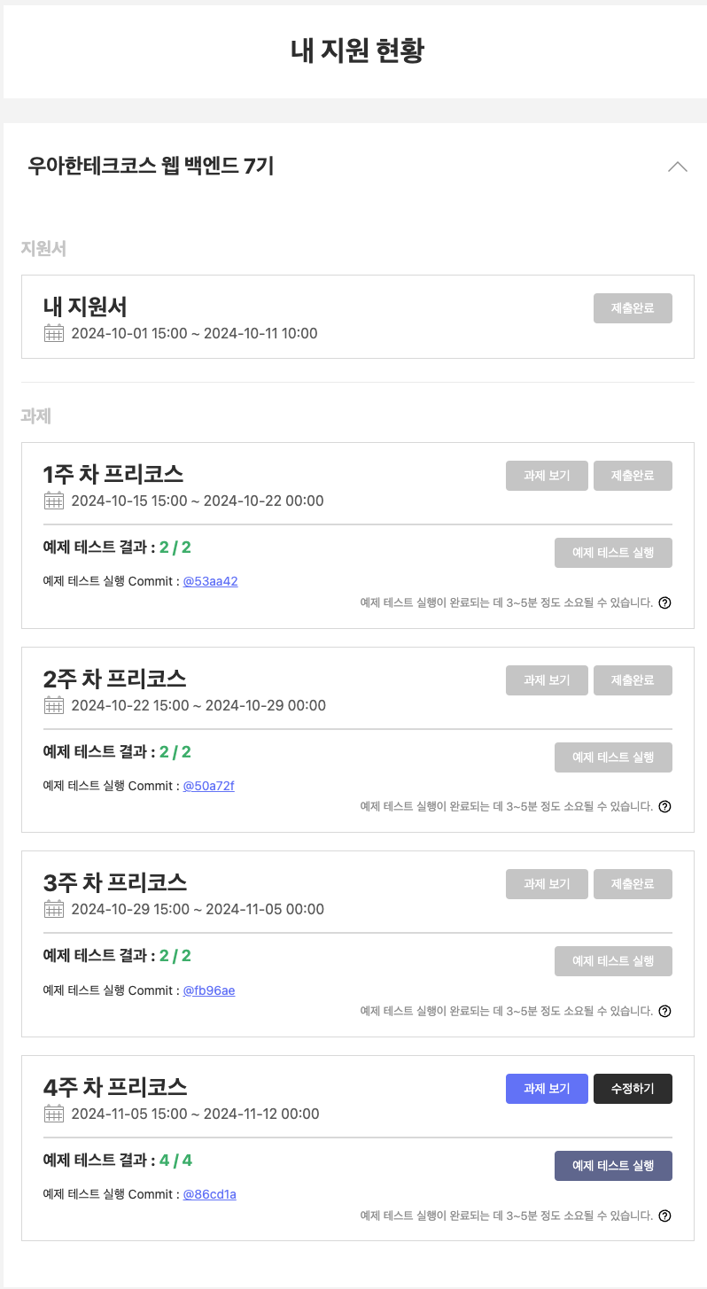 이번 마지막 주차 구현은 3/4 문제로 프리코스 커뮤니티가 좀 뜨거웠다. 해당 문제는 '로컬에서는 ApplicationTest가 잘 도는데, 예제 테스트에서는 하나가 실패' 라는 증상이었다. 나도 해당 문제를 겪었고, 해결했다.