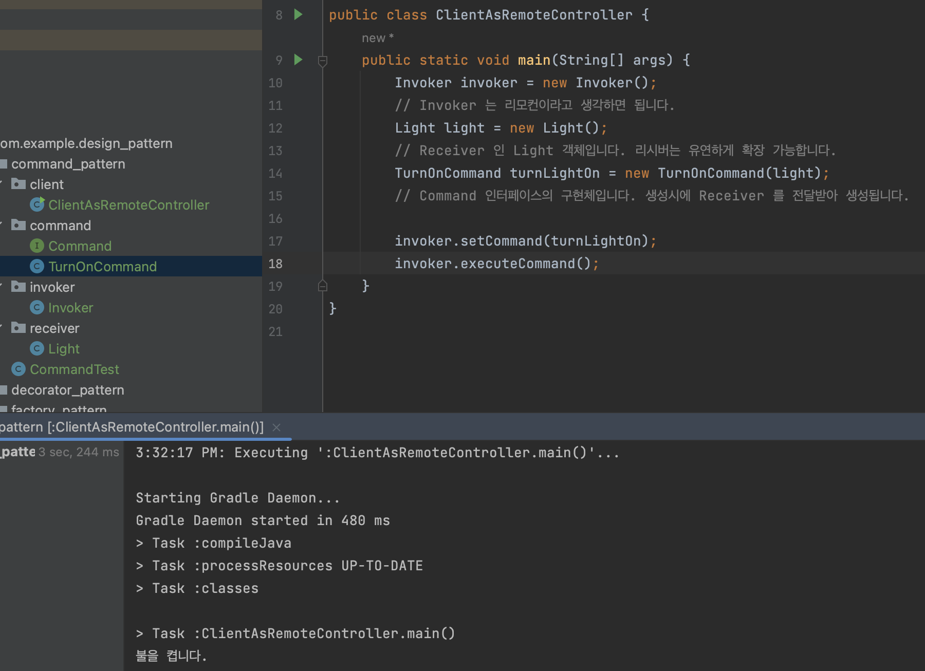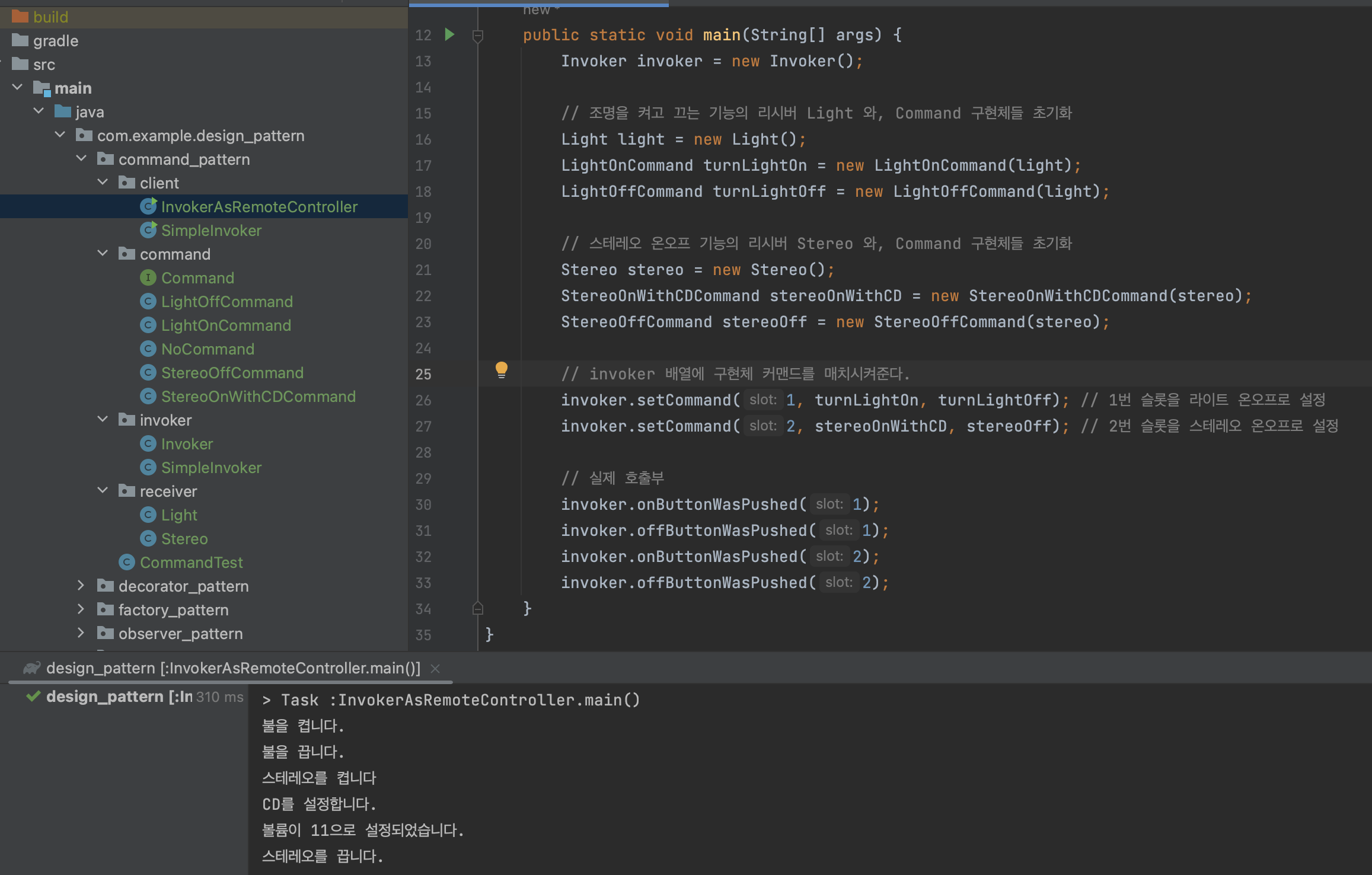 invoker.setCommand(1, turnLightOn, turnLightOff); // 1번 슬롯을 라이트 온오프로 설정