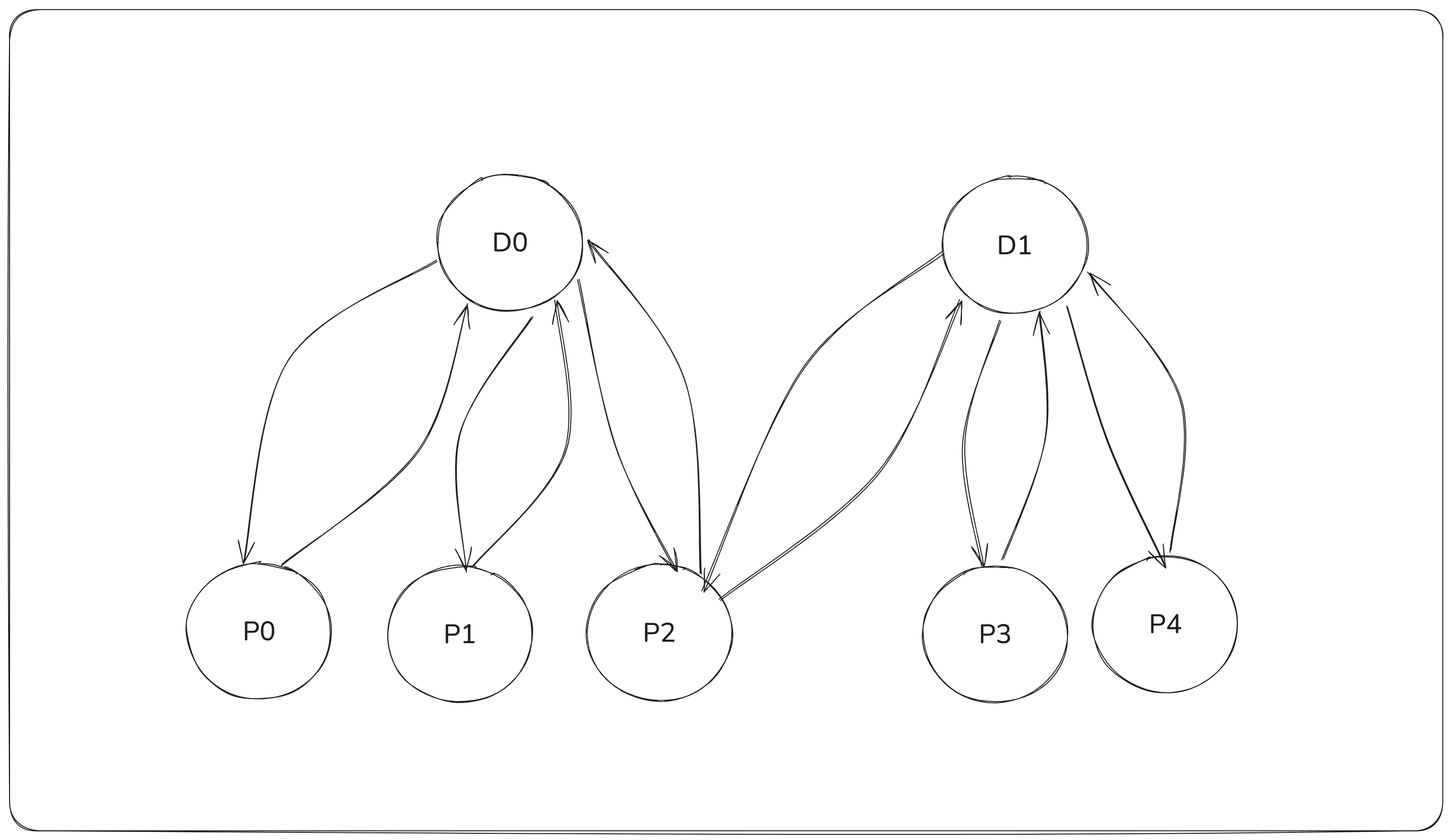 D0와 D1이 의사이고, P1~P4는 환자라는 설명이 있다면, 이 그래프가 나타내고자 하는 바가 좀 더 확실해진다. 하지만, 위의 그래프만으로는 의사와 환자가 가리키는 화살표의 연결이 무엇을 의미하는지는 알 수 없다. 이 역시 추가적인 설명이 필요하다.