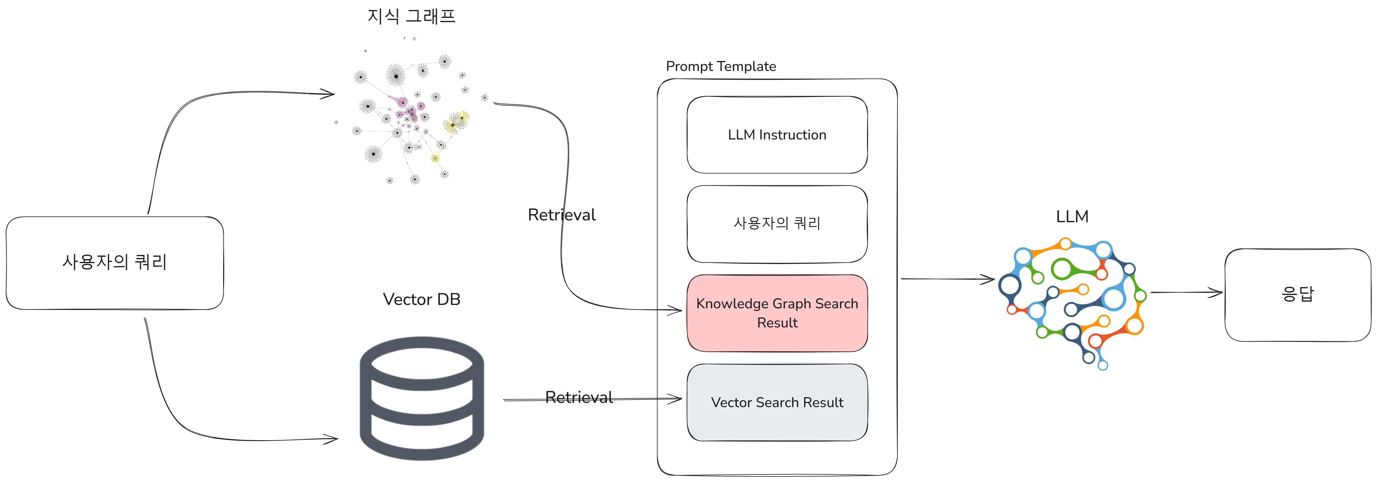 Advanced RAG를 통한 더욱 정확한 임베딩과 retrieval을 구축하는 동시에 지식 그래프를 통해 더욱 정확한 맥락을 가지고 있는 데이터를 통해 LLM에게 질문하는 템플릿 안에 아래와 같이 삽입하고자 하는 것이다.