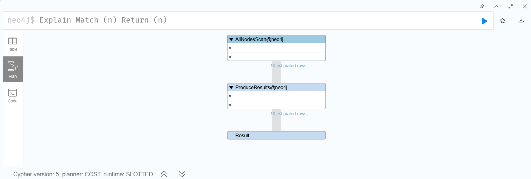 예를 들어 아래의 쿼리는 노드의 정보만을 반환하게 된다.