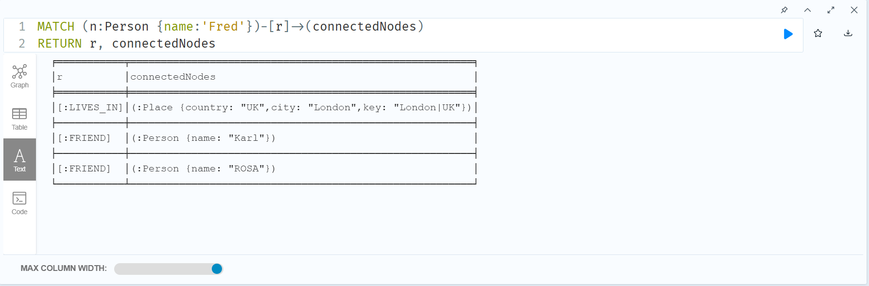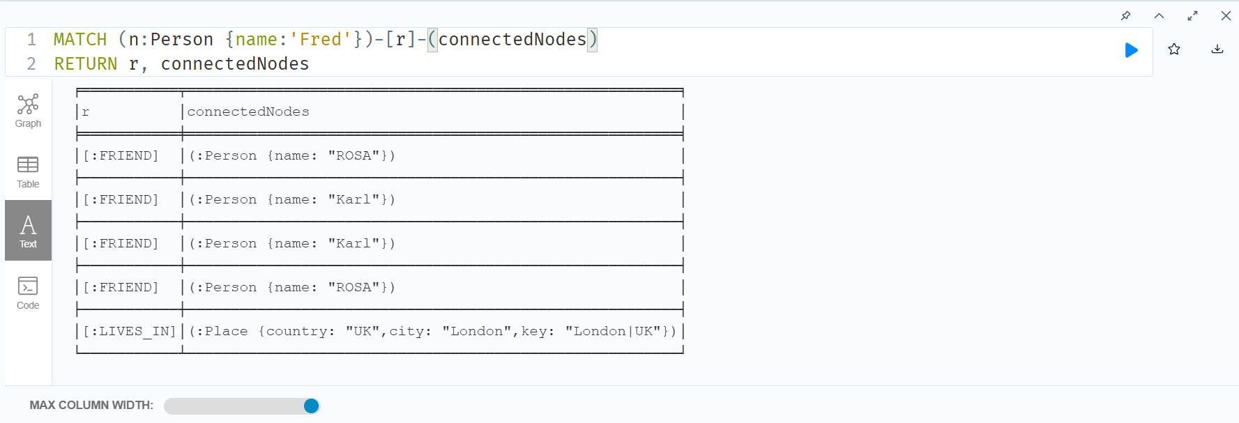 Fred 노드에 들어가고 나가는 모든 연결과 노드를 조회한 결과이다.