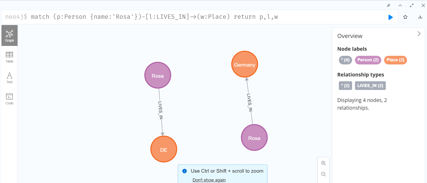 위와 같이 'person'노드와 'place'노드의 관계가 노드와 함께 잘 생성되었음을 알 수 있다.