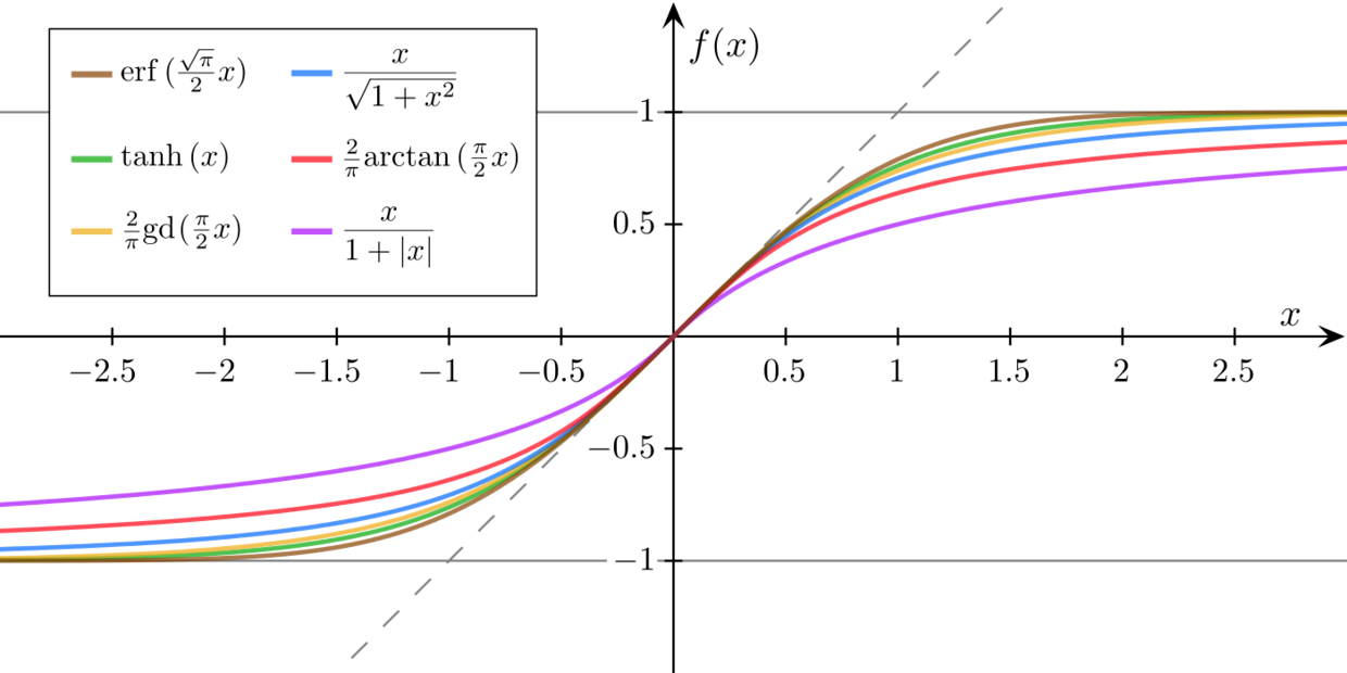 Sigmoid의 단점을 보완한 형태로, 출력 범위가 (-1, 1)이다.