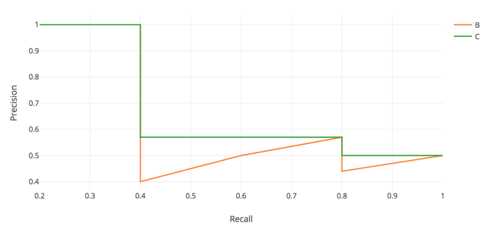 직관: Recall 0~1 구간에서 Precision이 얼마나 높게 유지되는가
