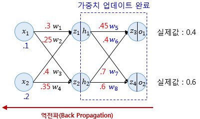 업데이트된 가중치로 다시 순전파를 수행하여 오차 감소 여부를 확인합니다.
