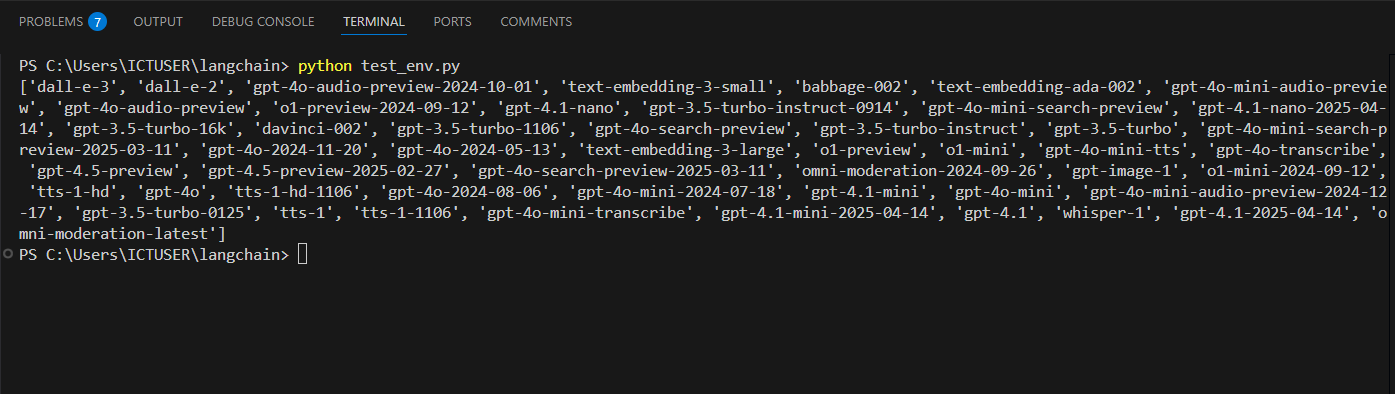 아무것도 출력되지 않거나 None이 뜨면 환경변수 설정을 다시 확인하세요.