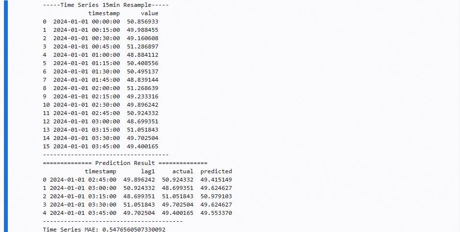 print("Time Series MAE:", mean_absolute_error(y_test, pred))