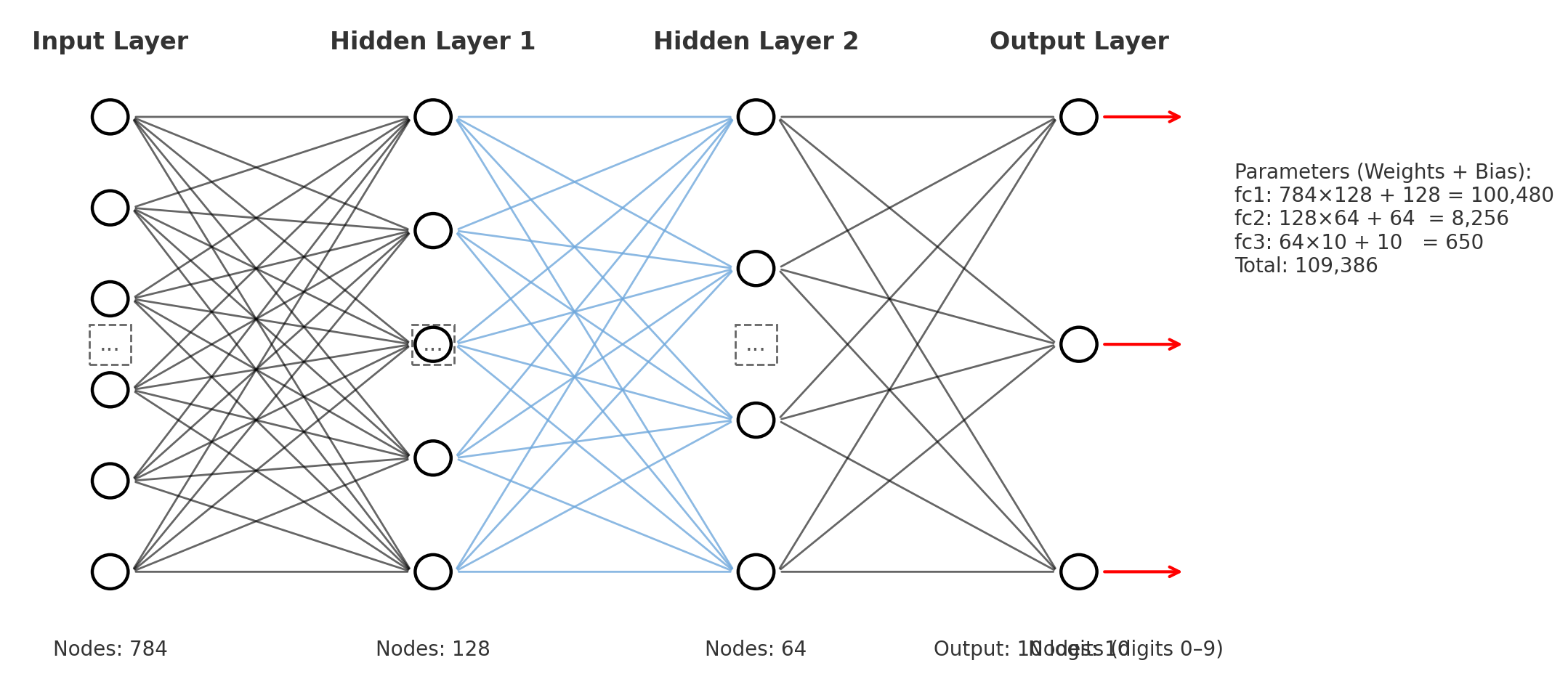 self.fc3 = nn.Linear(64, 10) # 은닉층 64 → 출력층 10 (숫자 0~9)