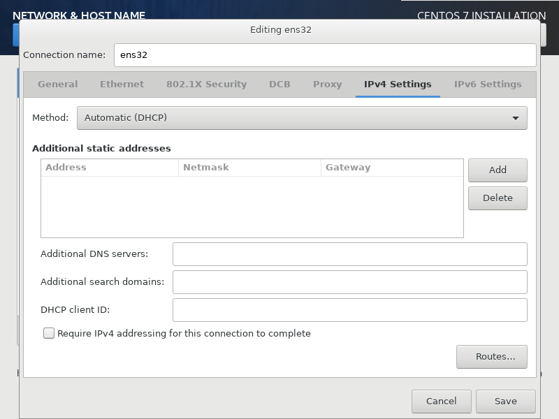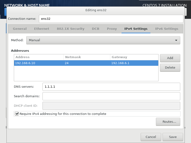 모든 정보가 입력되었다면 Require IPv4 addressing for this connection to complete 체크 후 Save 버튼을 클릭한다.